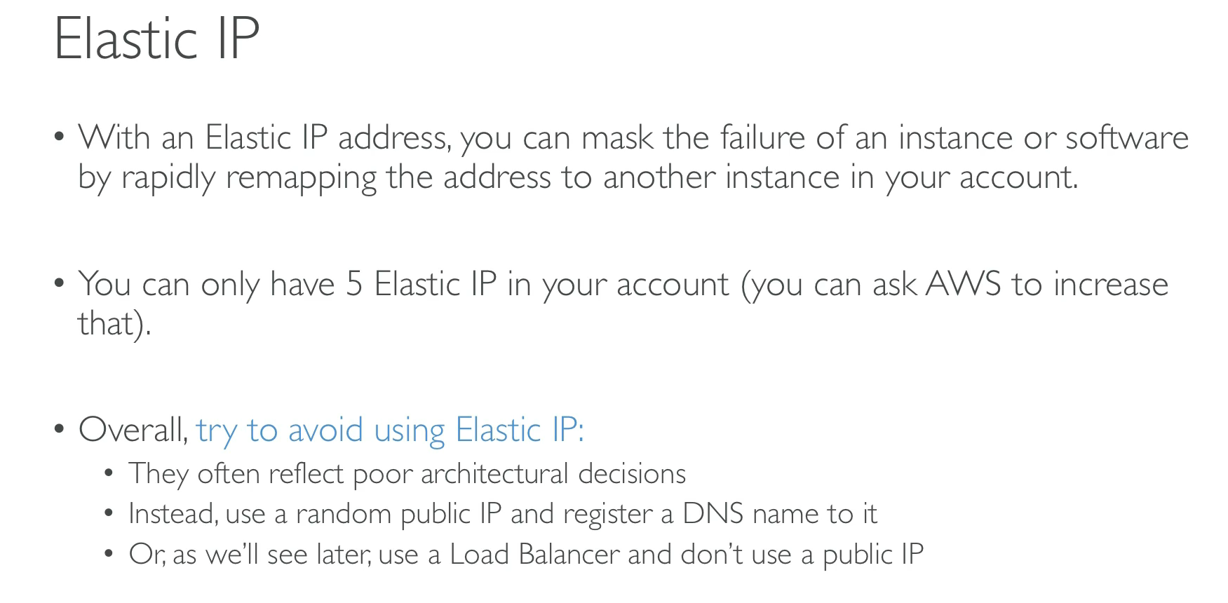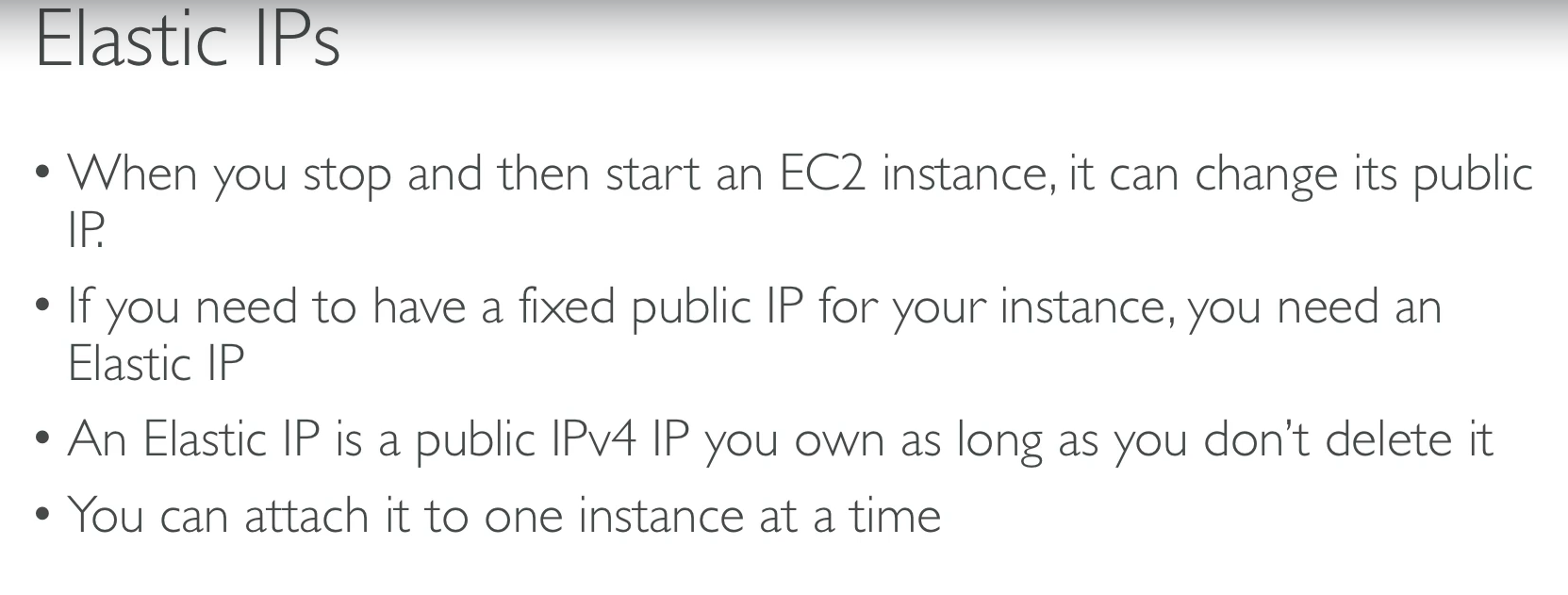 - Stop/Start β Preserves EBS but changes public IP (unless Elastic IP used).