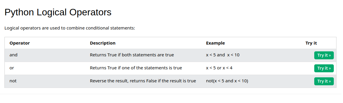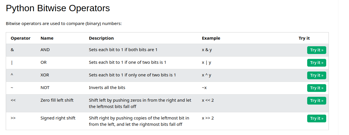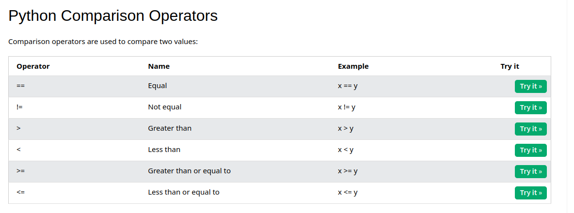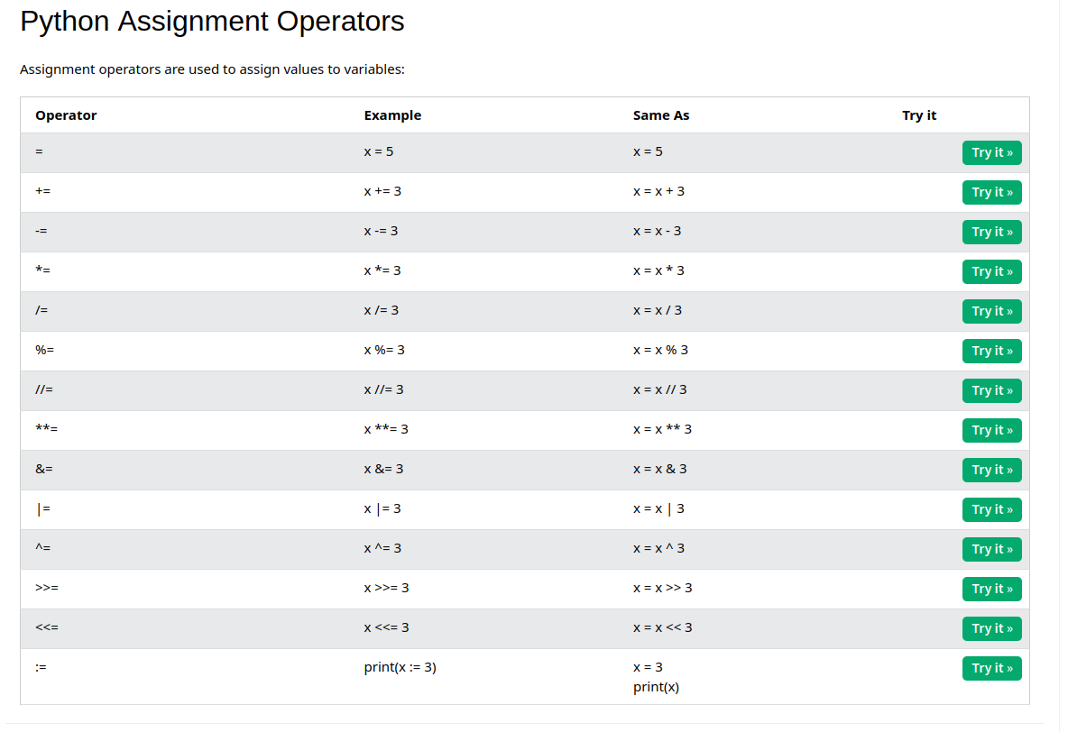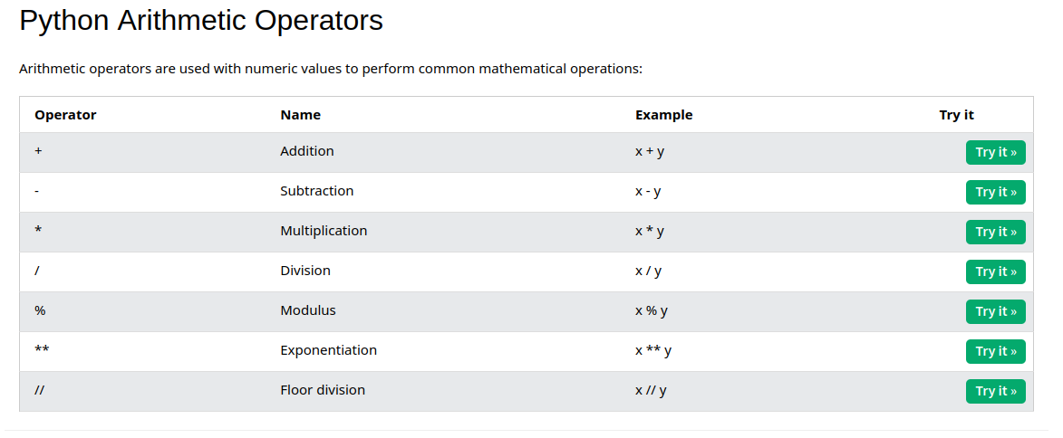 Python divides the operators in the following groups: Arithmetic operators Assignment operators Comparison operators Logical operators Identity operators Membership operators Bitwise operators