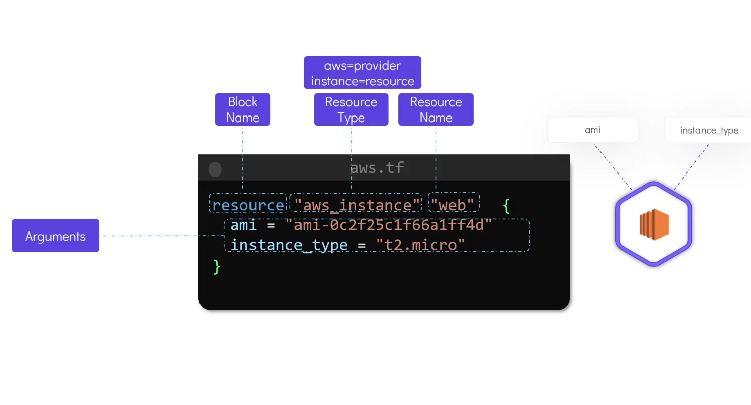 provider "aws" { region = "us-east-1" } resource "aws_instance" "example" { ami = "ami-0c55b159cbfafe1f0" instance_type = "t2.micro" } -