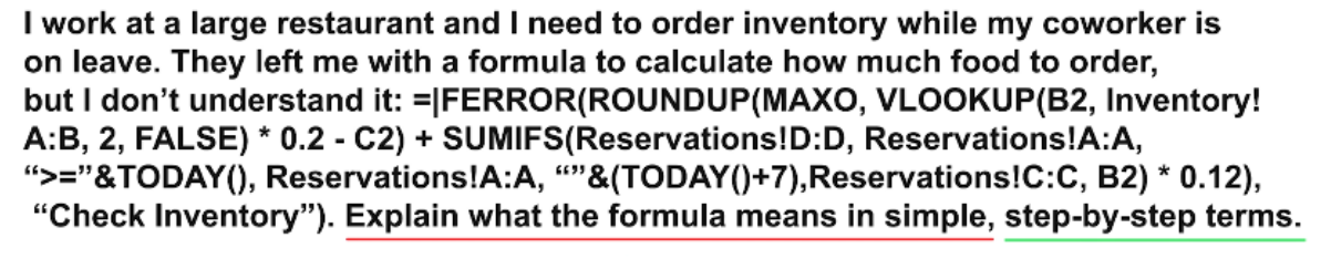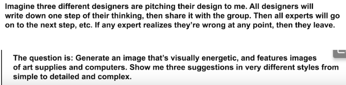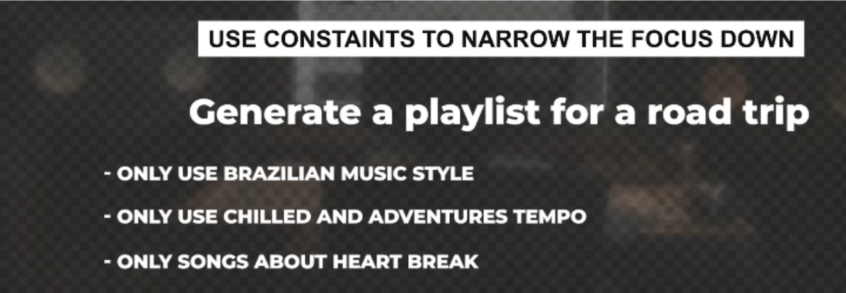 1)​ Separate prompts into shorter Sentences 2)​ Trying different phrasing or switching to an analogous task 3)​ introduce constraints to narrow to focus down​